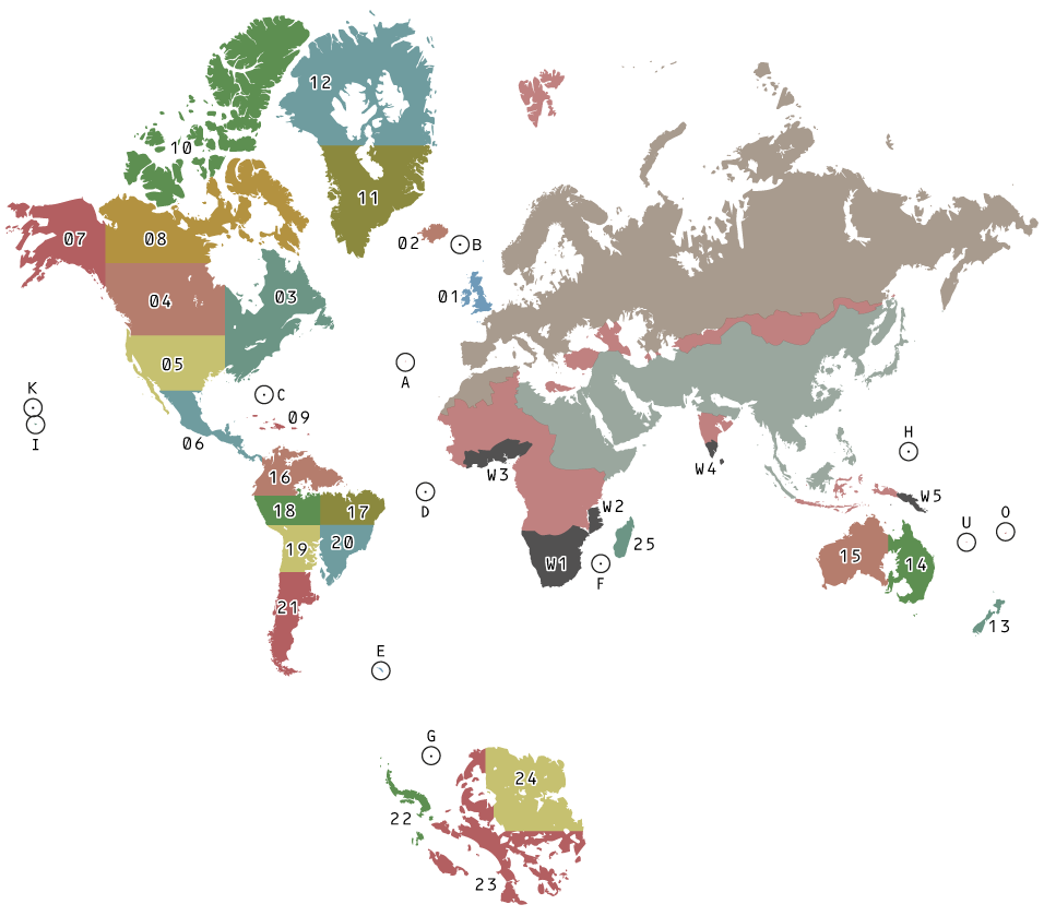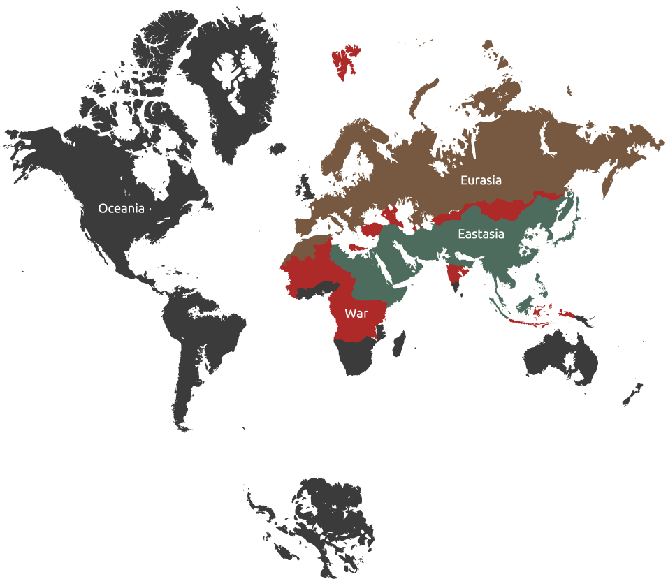 O Estado de Oceanía domina unha superficie total de 64.330.873 km², distribuídos en 24 Airstrips (Franxas aéreas), 4 Warstrips